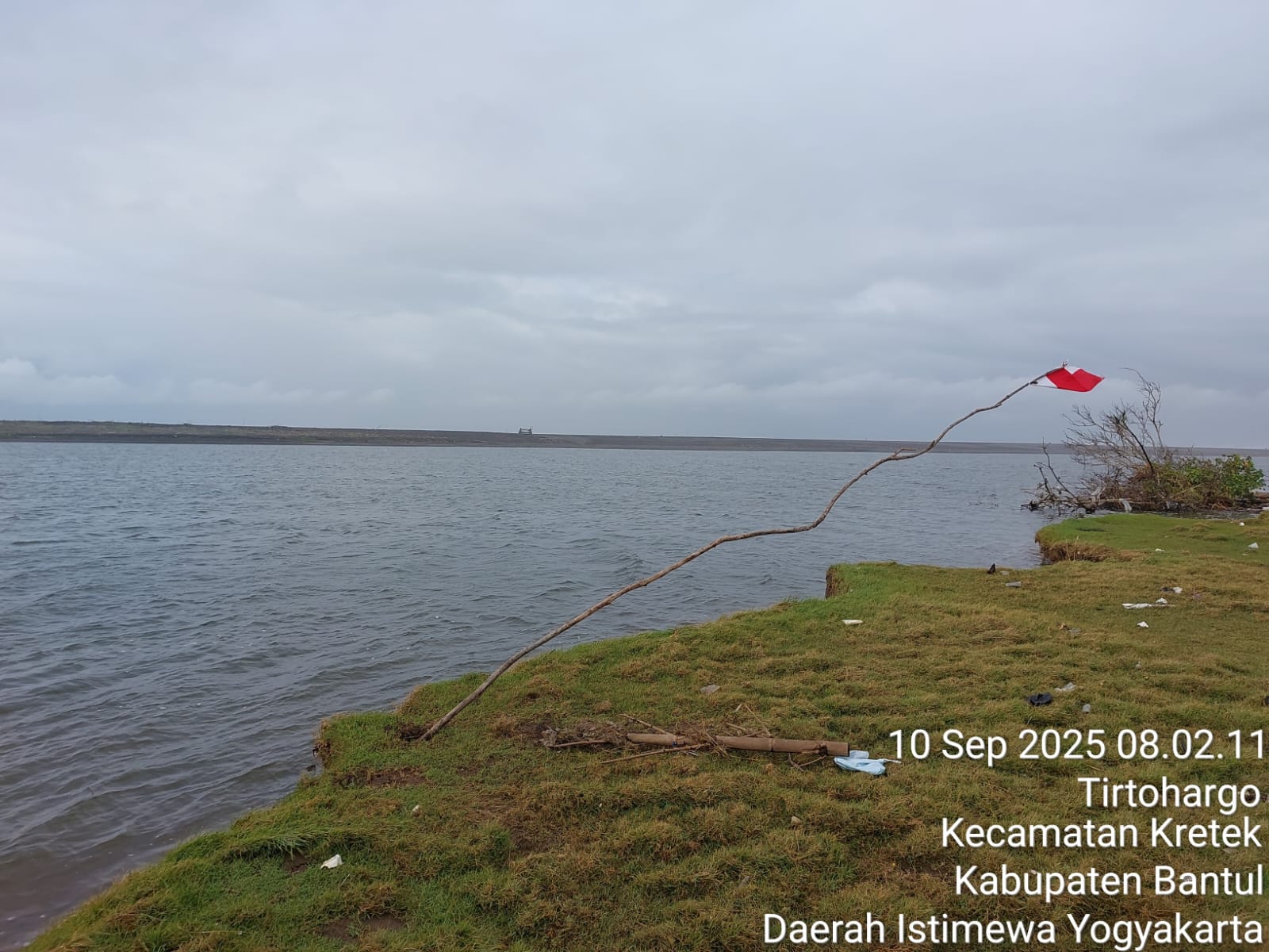 Lurah Tirtohargo Sugiyamta menyampaikan, dihari rabu 09 September 2025 dari dini hari air laut ada peningkatan dari biasanya, sedangkan Suwangan di Kawasan hutan mangrove baros yang merupakan saluran Sungai Opak yang menuju ke laut dimusim kemarau menyempit akibat pasir Pantai yang menutupinya. Sehingga mengakibatkan air laut meluap dilahan pertanian warga.
